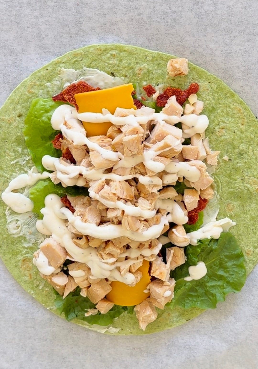 - Lettuce – I feel like a wrap is not complete without some greens! You can swap this out for spinach or whatever greens you have on hand. My personal preference for this wrap though is just normal lettuce!